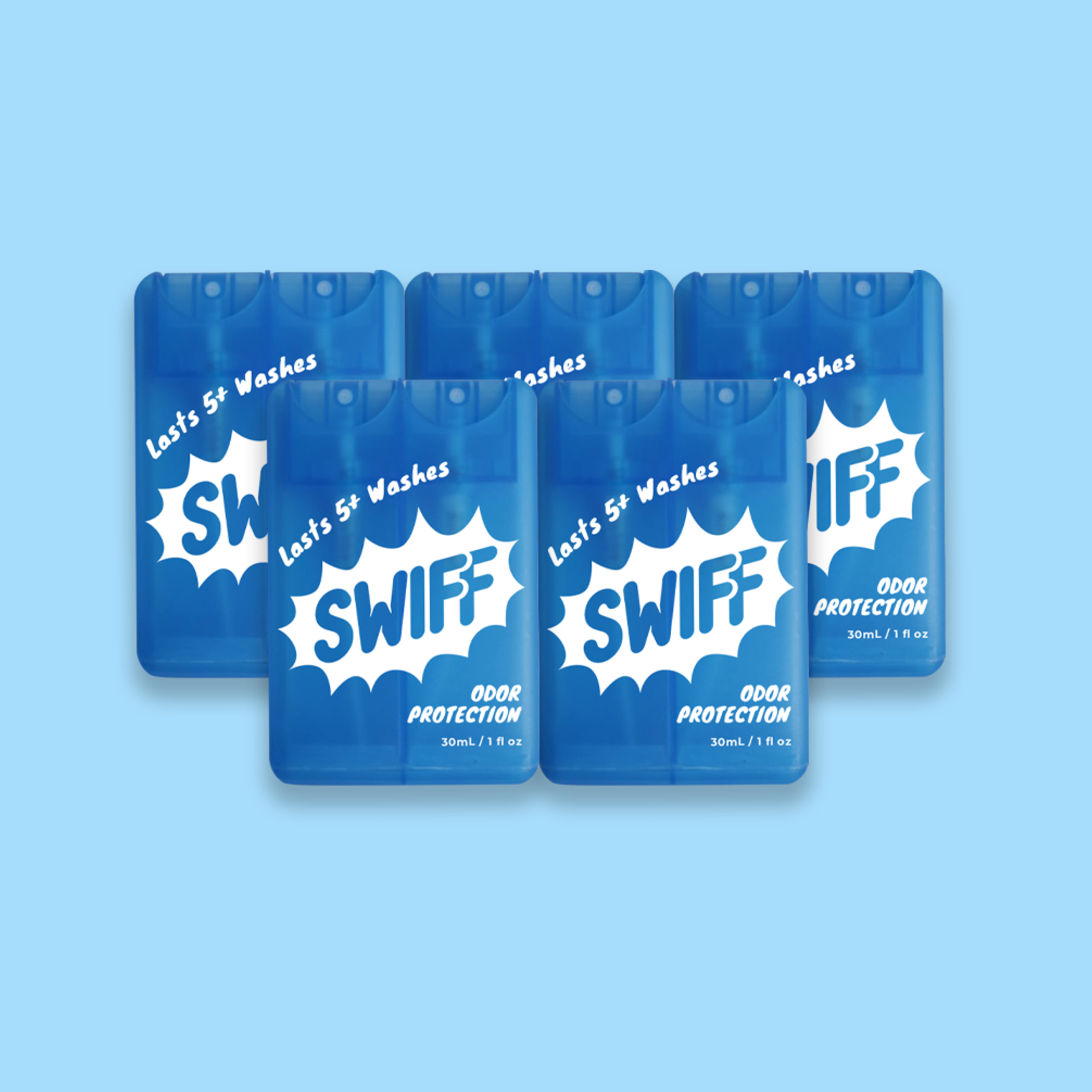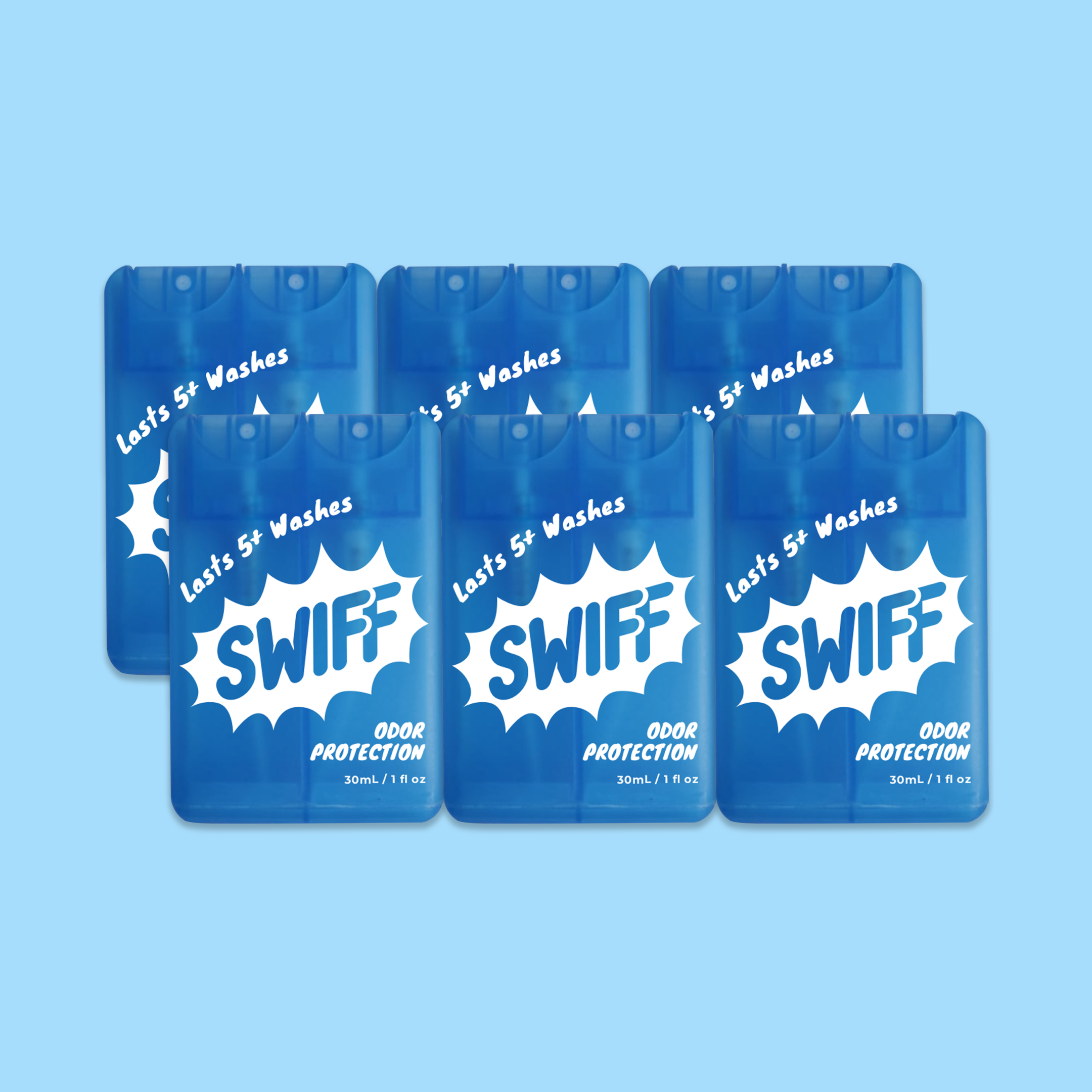 Swiff kills odor-causing germs. Apply to fabrics and remain protected for weeks (even after washes).