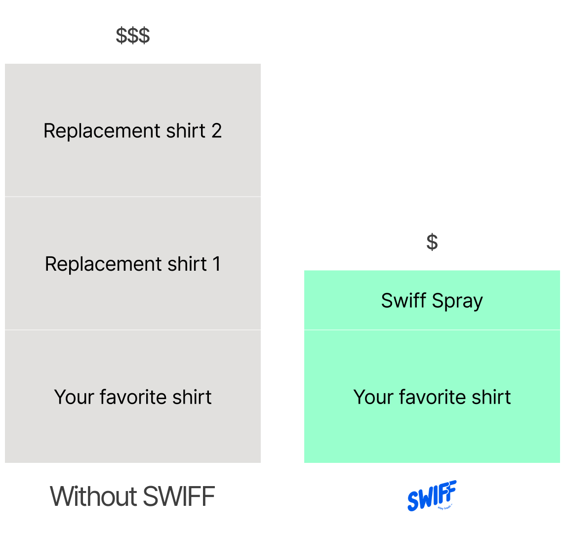 SWIFF lasts through the wash and keeps your items fresh for longer, saving you from costly replacements and washing.